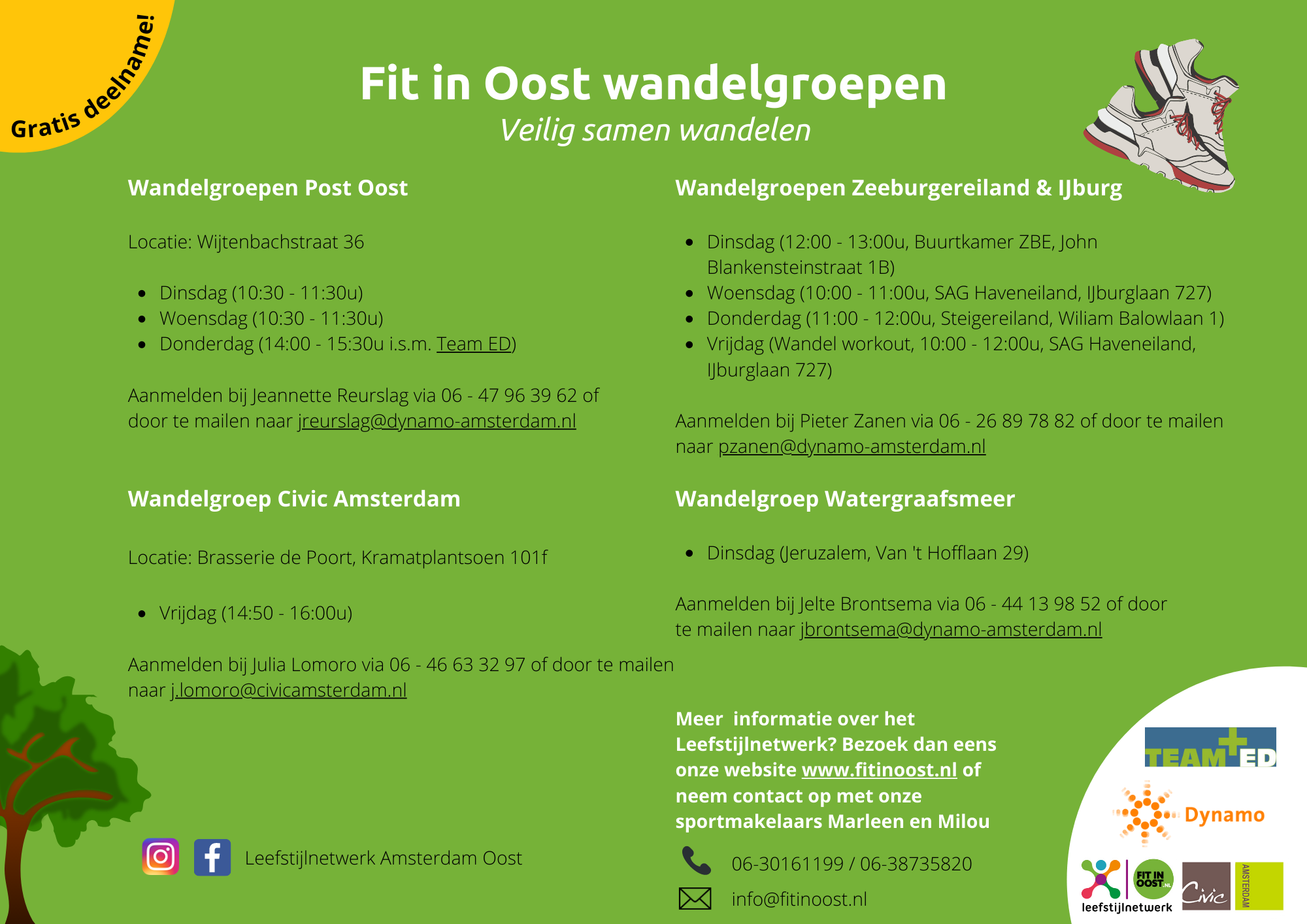 Ben jij of ken jij iemand die in deze tijden wel graag wil (blijven) bewegen, maar zich liever niet aansluit bij een beweeggroepje in een binnenruimte? Wellicht is deelnemen aan een van de wandelgroepen dan een idee. Je vindt hier een overzicht van de wandelgroepen. Ook voor de wandelgroepen geldt dat aanmelden op dit moment verplicht is.