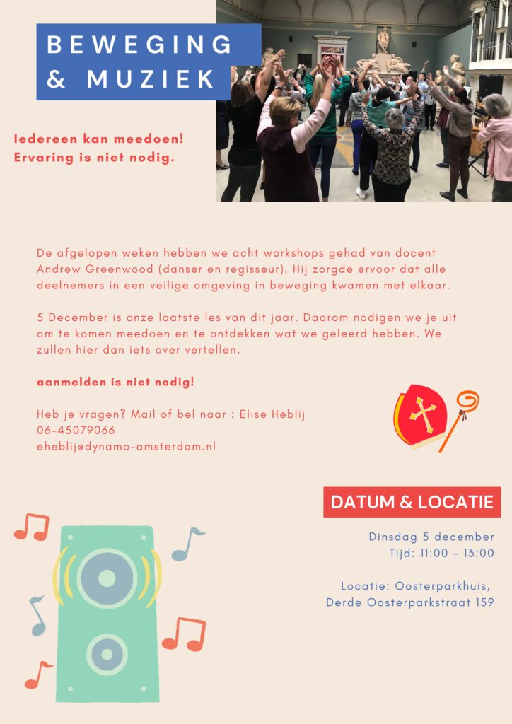 De deelnemers van de danslessen “Samen bewegen, expressie en de wereld om je heen” zijn inmiddels alweer bij hun laatste les aangekomen en nodigen iedereen van harte uit om te komen kijken en… mee te doen! (Ervaring is niet nodig.)