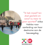 De dag werd gezamenlijk afgesloten met een gezonde lunch in de kantine van de sporthal. Wat hebben we er tijdens deze dag ontzettend van genoten om jullie allemaal weer te kunnen zien! Kijken jullie net als wij alweer uit naar de volgende beweegdag? Noteer dan alvast vrijdag 25 februari 2022 in je agenda! Gelukkig hoef je ook voor die tijd niet stil te zitten en kan je volop activiteiten uitproberen uit ons beweegaanbod. Bekijk de beweegagenda per buurt hier!