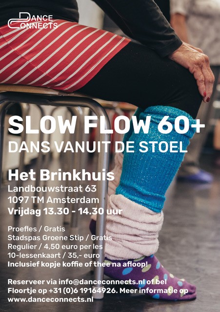 Dat je alleen kan dansen als je kan staan is een grote misvatting, zo dacht ook Stichting Dance Connects. Daarom startten zij in 2018 met hun zogenoemde 'Slow Flow' lessen: Danslessen waaraan iedereen deel kan nemen! Van 60+ tot 100+ en van mensen in een rolstoel tot aan mensen bij wie het lukt om te staan.