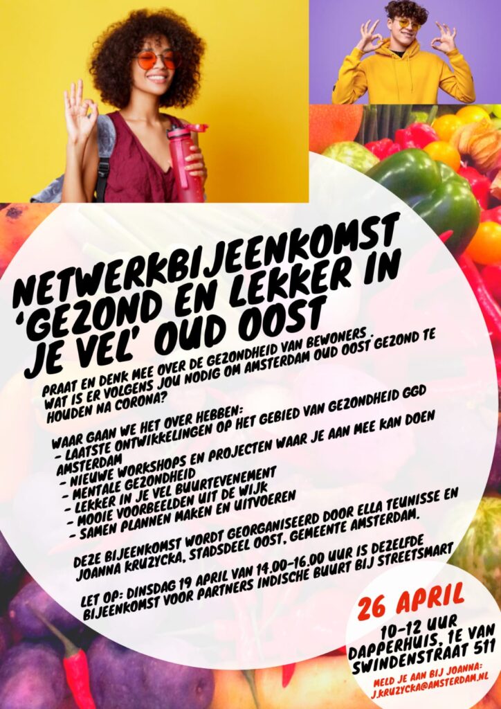 Wil jij meepraten en meedenken over de gezondheid van buurtbewoners? Wil jij jouw ideeën delen over gezond blijven in Oud Oost na corona? Dan is deze netwerkbijeenkomst echt wat voor jou!