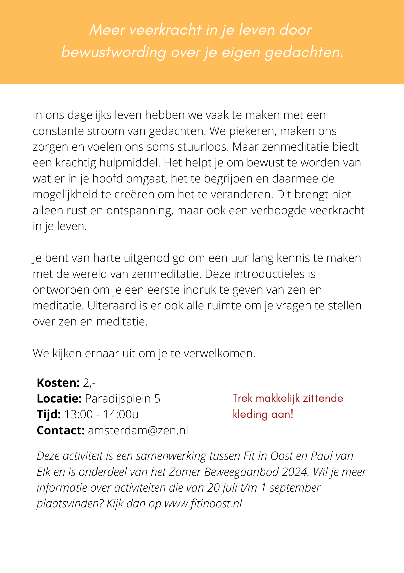 Kom het ontdekken met de introductieles “Zenmeditatie” gegeven door Paul van Elk op donderdag 25 juli!