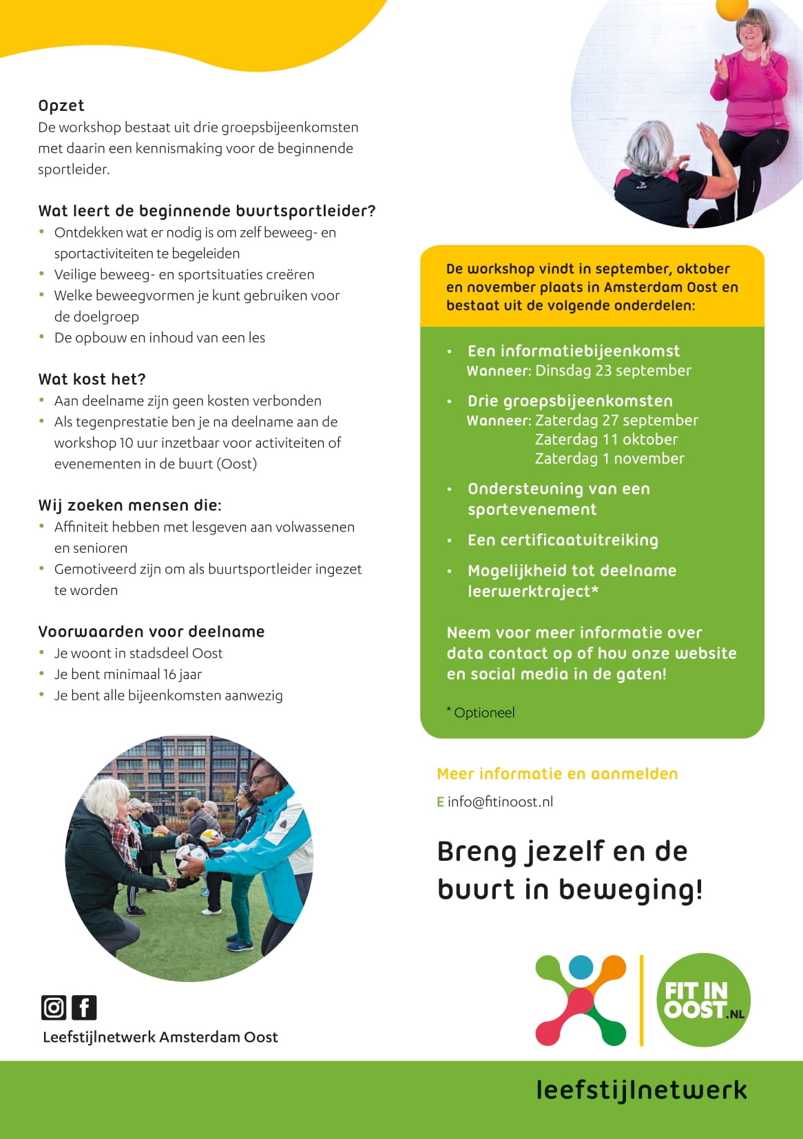 Wil je meer weten over deze workshop? Neem dan contact op met Fit in Oost