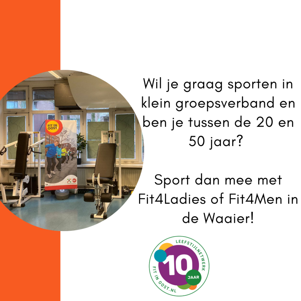 Ben jij tussen de 20 en 50 jaar en wil je in een kleine groep werken aan meer beweging en een gezonde leefstijl? Sport dan gezellig mee met de groep Fit4Ladies of Fit4Men!