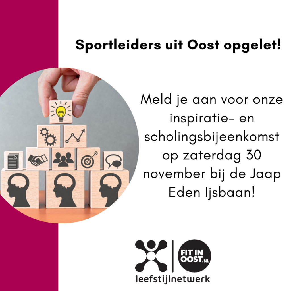 Aanmelden voor de scholings- en inspriatiedag kan via deze link. Iedereen mag iemand meenemen die interesse heeft om ook sportleider in Oost te worden!